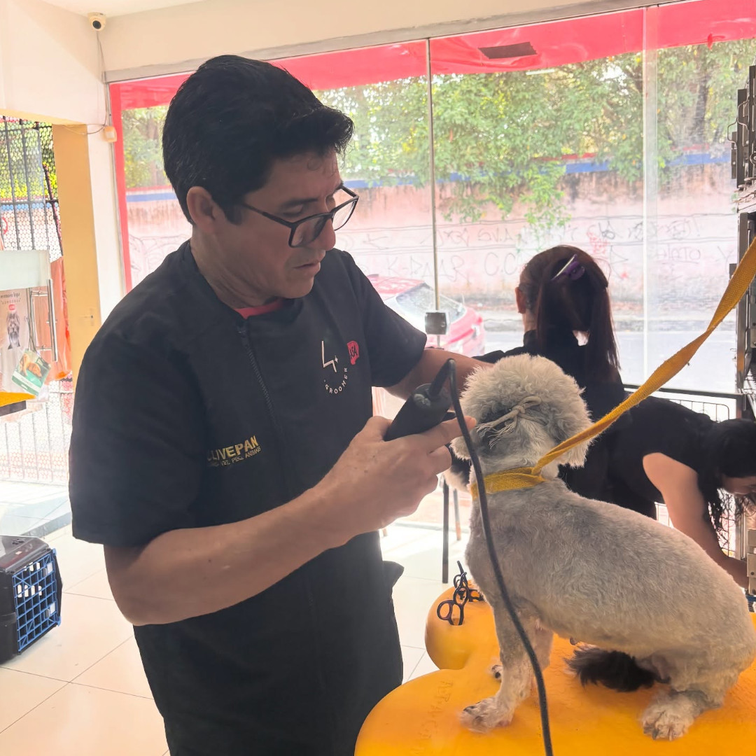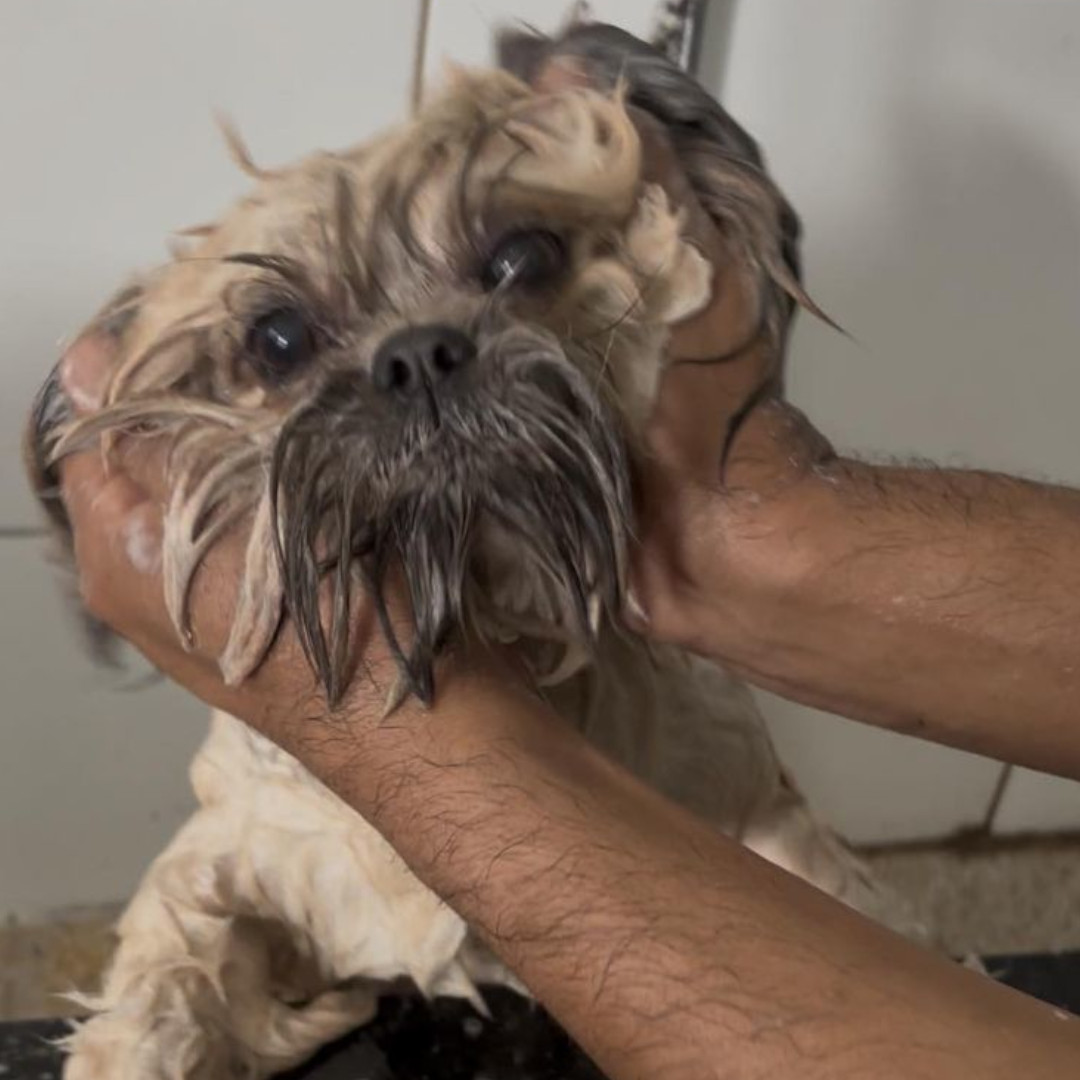 Higiene completa com produtos naturais e de alta qualidade, corte estético, limpeza de ouvidos, corte de unhas e escovação para pets relaxados e cheirosos.
